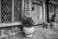 Panel Szklany Kwiaty - Stary zaniedbany dom Tudorów w Exeter, Anglia, zbliżenie na drzwi wejściowe. #1077428735
