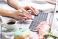 Panel Szklany Kwiaty - Relaks o poranku. Kobieta pisze na komputerze leżąc na łóżku. #232566465