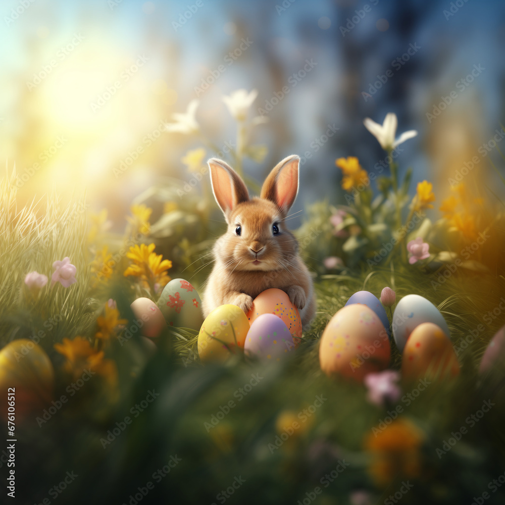 Fototapety Wiosna - Kartka na Wielkanoc. Wielkanocna kartka z życzeniami. AI generative #676106512