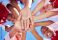 • Team, children and soccer athlete hands together to show sport community, support and success. Fitness, football and exercise training proud hand sign of friends and players ready for teamwork