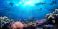 • Underwater view of the coral reef. Life in the ocean. School of fish.