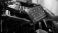 Black modern car on black background.