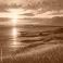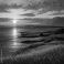 • Zachód słońca nad morzem. Morski krajobraz z zielonymi łąkami