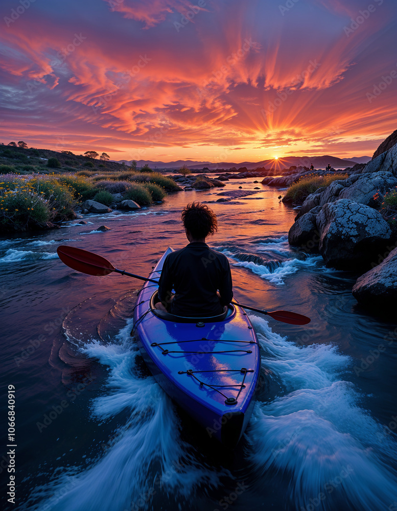 Obrazy Zachód słońca - kajak, krajobraz, pływanie, zachód słońca #1066840919