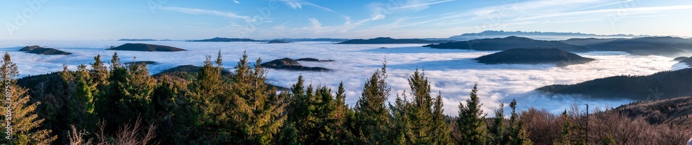 Obrazy Zachód słońca - Zachód Słońca nad chmurami z Mogielicy #1075528535
