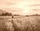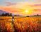 Obrazy Zachód słońca - Kobieta idąca przez łąkę. Zachód słońca, letni krajobraz.Obraz, sztuka, grafika #1555814519