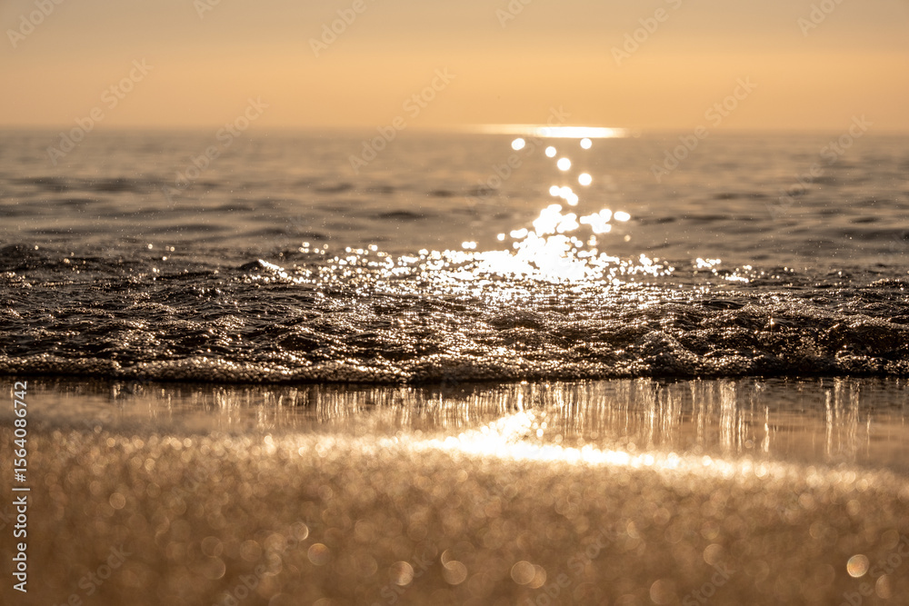• Odbicia słońca na wodzie w świetle zachodzącego słońca nad morzem bałtyckim