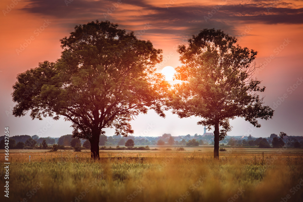 Obrazy Zachód słońca - Zachód słońca między drzewami #1660427654