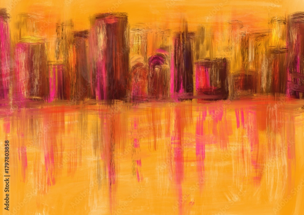 Obrazy Zachód słońca - Zachód słońca nad wieżowcami #1797803858
