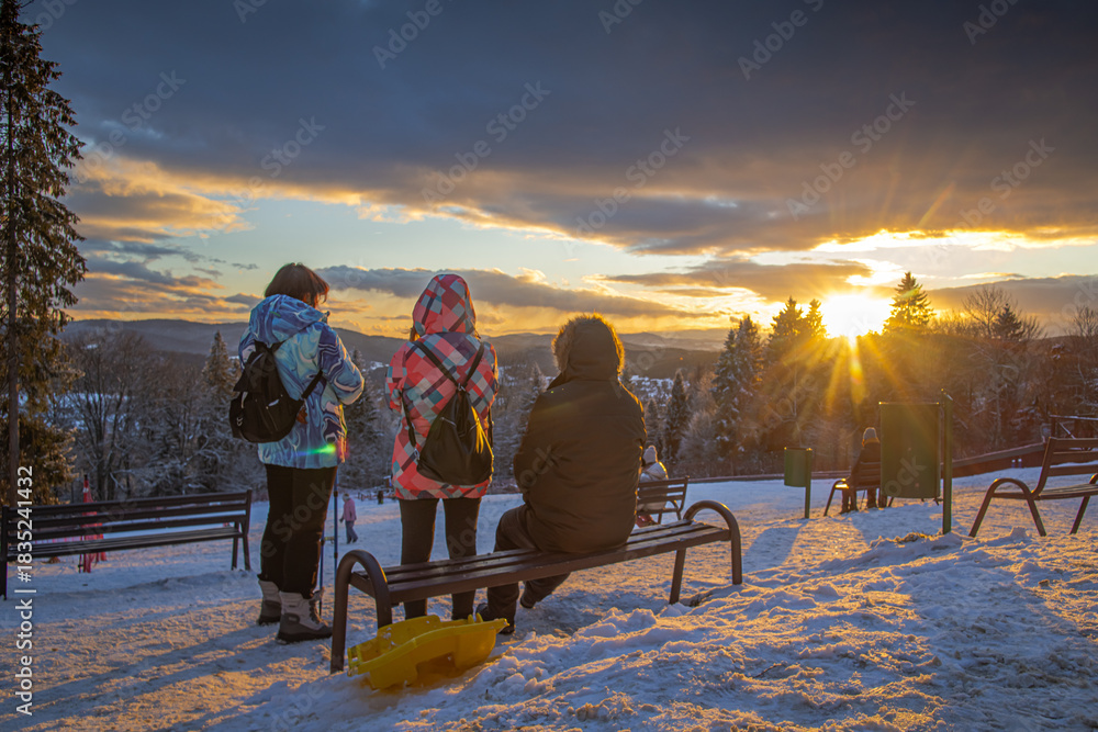 Obrazy Zachód słońca - Zachód słońca na Górze Parkowej w Krynicy-Zdroju zimą. #1835241432
