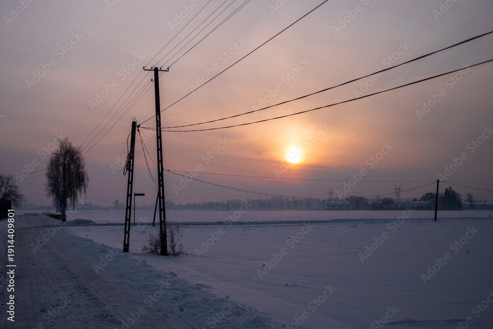 Obrazy Zachód słońca - Zimowy zachód słońca na ulicy #1914409801