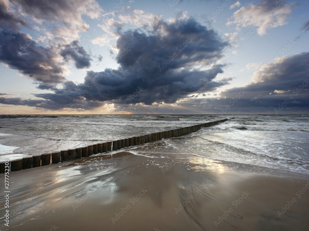 Obrazy Zachód słońca - Morze zachód słońca - chmura i falochron #277752303
