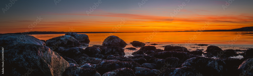 Obrazy Zachód słońca - Złota godzina nad skalistym wybrzeżem podczas zachodu słońca w Parku Narodowym Ytre Hvaler w... #334595087