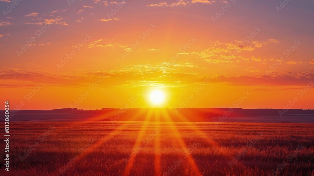Obrazy Zachód słońca - Springtime sunrise, nature, peaceful, horizon, morning, orange, tranquil, awakening. --ar 16:9... #812060054