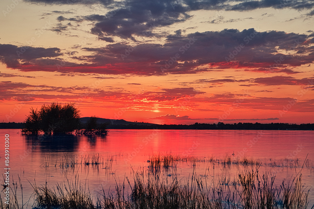 Obrazy Zachód słońca - zachód słońca nad woda #863910300