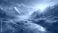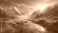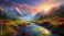 Obrazy Zachód słońca - Strumyk górski w mglistej górskiej dolinie o zachodzie słońca tapeta obraz #946777001