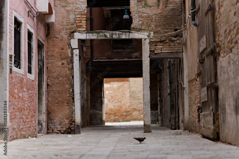 Obrazy Uliczka - Opuszczona uliczka z gołębiem #1581283344
