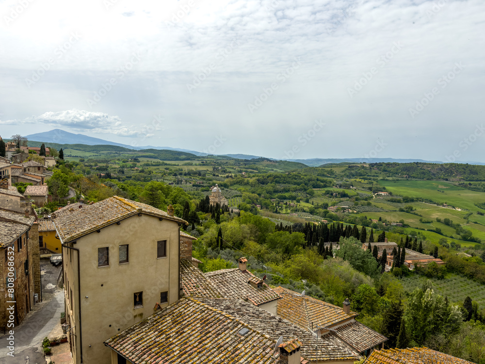 Obrazy Uliczka - Toskania, stare małe miasteczka na wzgórz®zach i zielone doliny porośnięte bujną roślinnością #808068632