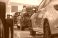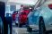 Naklejki Auto - Rear view of new luxury red and white car parked in modern show room. Selective focus on white... #354562959