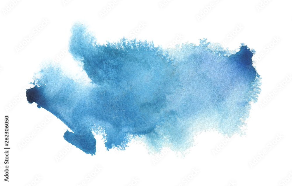 • Abstract blue watercolor blot painted background. Isolated.