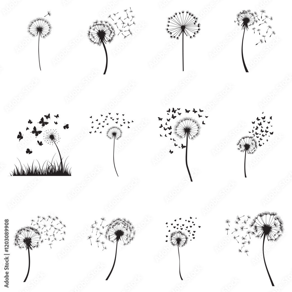 • Collection of Dandelion Floral Clipart Design, Dandelions Plant Vector illustration