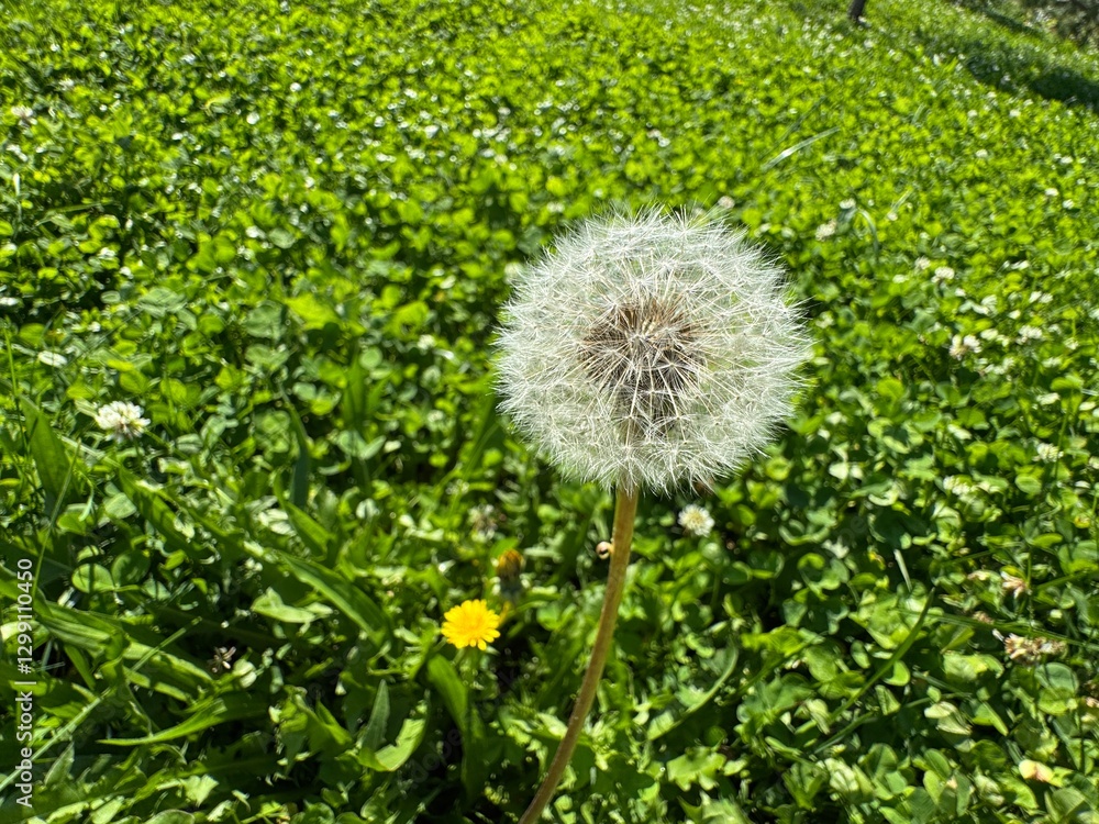 Obrazy Dmuchawce - Taraxacum officinale plant in full bloom. Dandelion blowball, clock or white fluffy seeds.... #1299110450