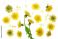• Dandelion flower or Taraxacum Officinale isolated on white background. Top view. Flat lay pattern