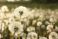 • Field of white puffs from dandelions, taraxacum officinale flower.
