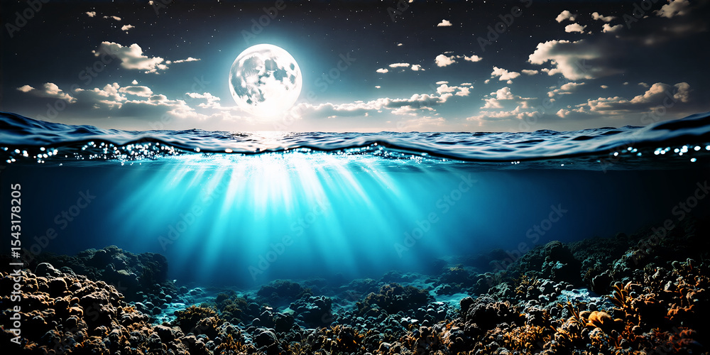 Obrazy Natura - fondale marino illuminato dalla luce di una luna piena #1543178205