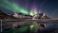 Obrazy Natura - Zorza polarna rozświetlająca nocne niebo nad górskim krajobrazem. Magiczna gra świateł natury... #1620126865