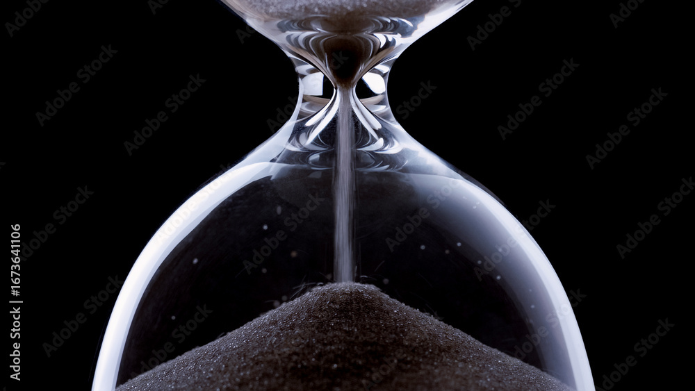 Obrazy Natura - Sand flows between the hourglass halves, symbolizing the passage of time in a striking way. #1673641106