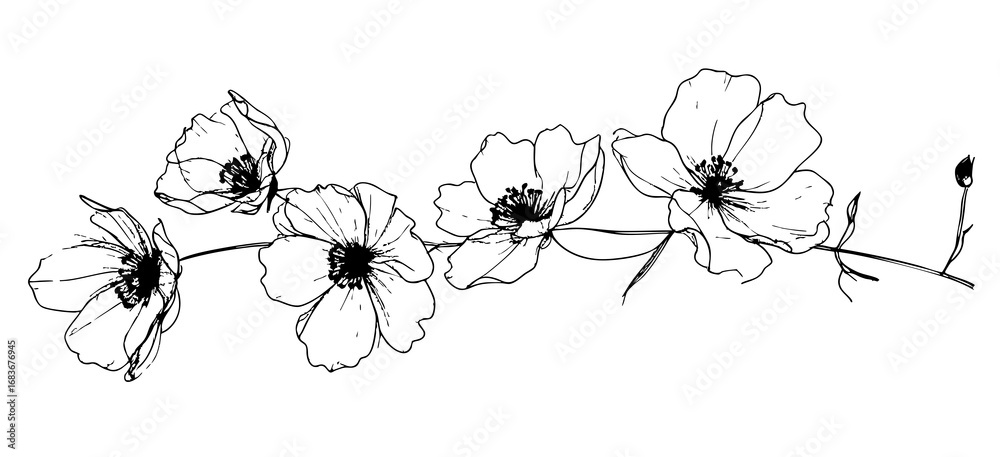 • Minimalistyczna ilustracja kwiatowa – czarno-białe kwiaty dekoracja