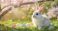 • Coniglietto bianco tra uova pasquali colorate. Generative AI