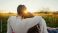• Coppia fa picnic in campagna nella natura al tramonto per san Valentino