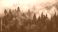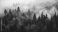 • Gęsty las, w którym drzewa znikają w mglistym obłoku, tworząc tajemniczą i eteryczną atmosferę.