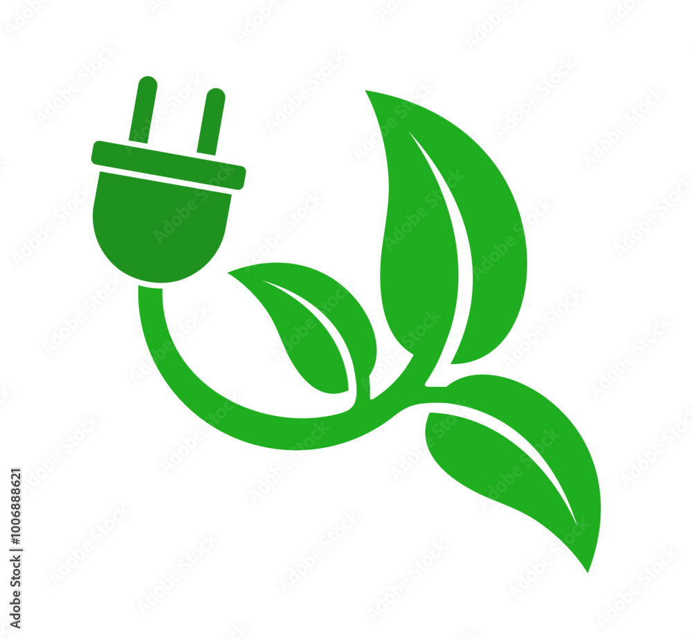 Obrazy Liście - liście i wtyczka elektryczna, ikona zasilania ekologicznego #1006888621