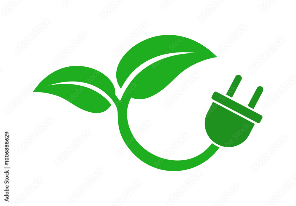 Obrazy Liście - liście i wtyczka elektryczna, ikona zasilania ekologicznego #1006888629