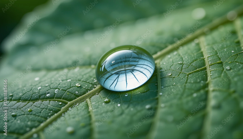 Obrazy Liście - Zbliżenie na kroplę wody na zielonym liściu #1361885656