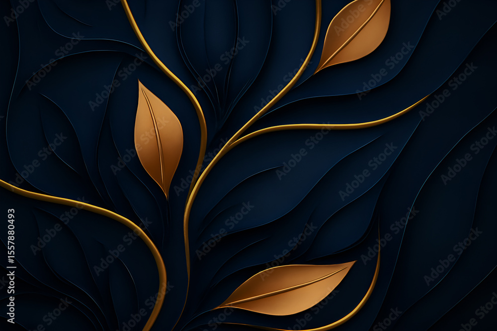 • Elegancka ilustracja liści w odcieniach złota na ciemnym tle – nowoczesny design w stylu minimalistycznym.