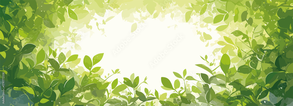 • Jasne zielone liście tworzące ramę wokół pustego, jasnego centrum, symbolizujące naturę i świeżość.