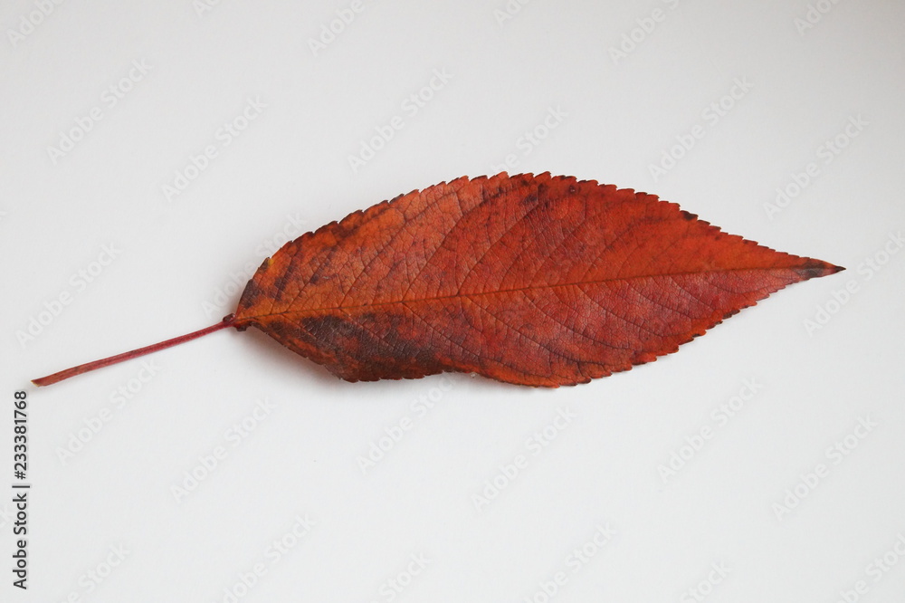 Obrazy Liście - Czerwony jesienny liść na białym tle #233381768