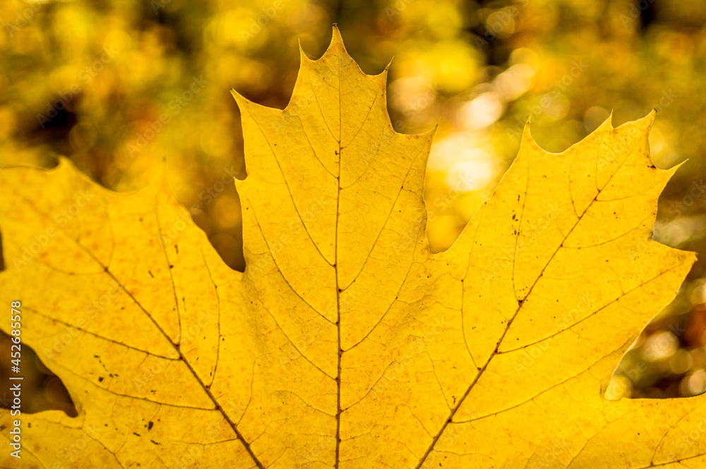 Obrazy Liście - jesienny las i jesienne żółte liście #452685578