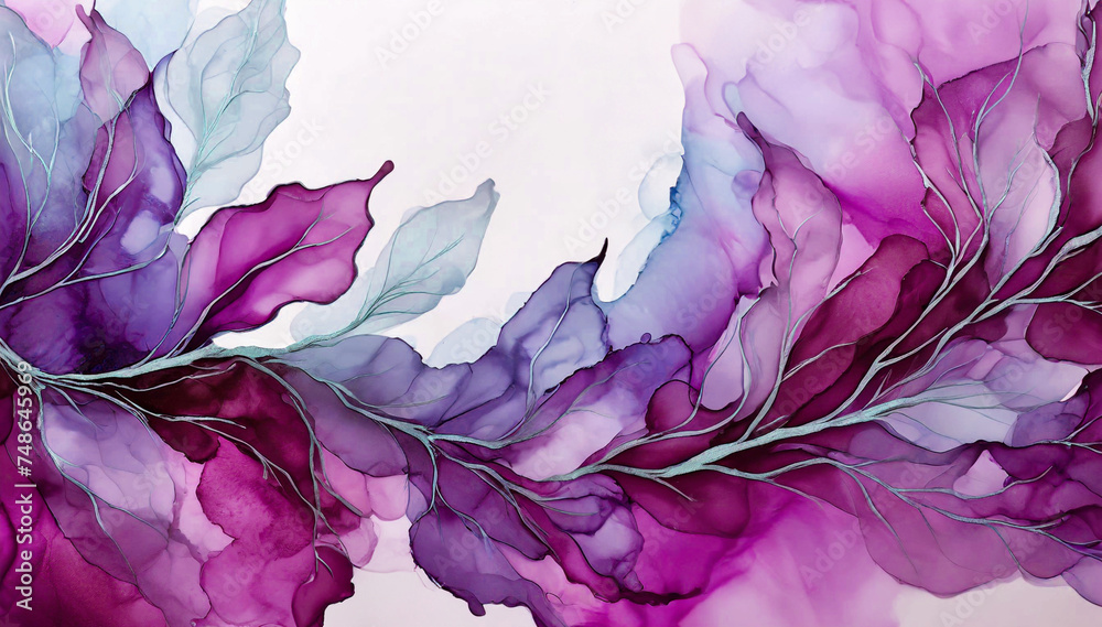 Obrazy Liście - Fioletowe tło, abstrakcyjne liście #748645969