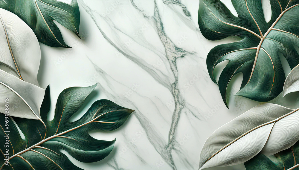 Obrazy Liście - Tło, ilustracja zielone duże liście #969038673