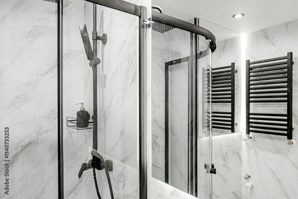 Obrazy Marmur - Biała łazienka z czarnymi detalami #1140733253