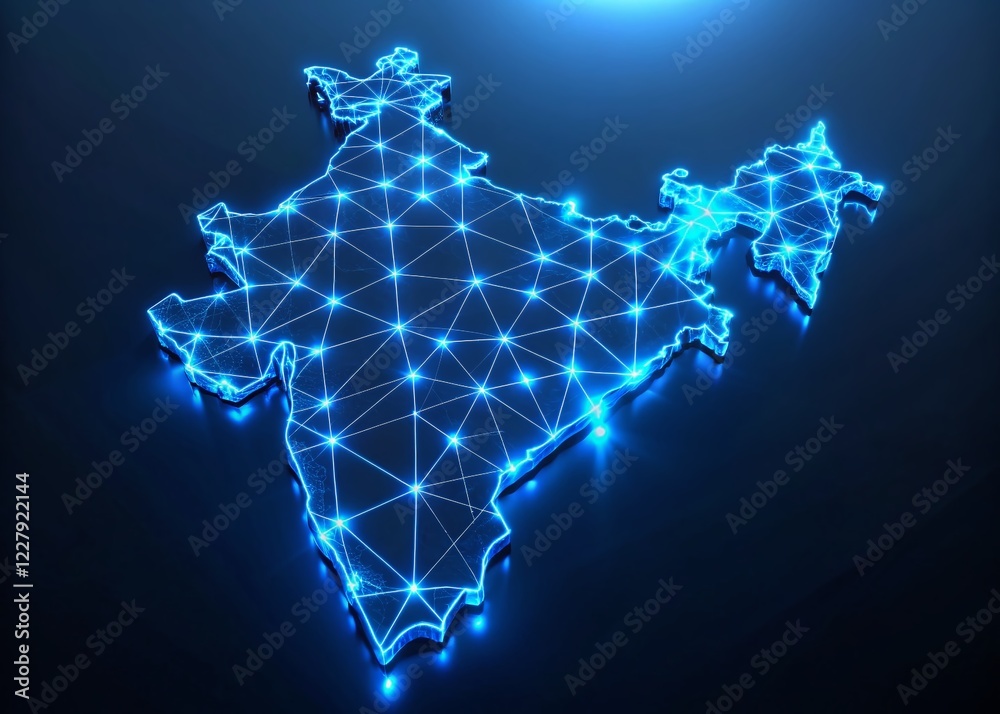 Geometria - Futuristic Neon Blue 3D Map of India: Abstract Geometric Tilt-Shift #1227922144
