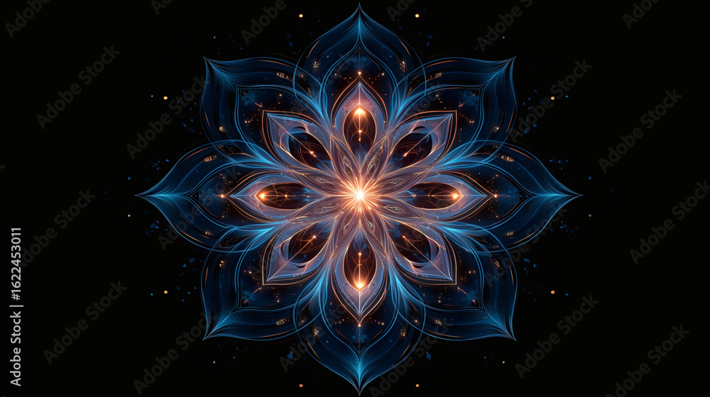 Geometria - A mesmerizing, symmetrical kaleidoscope pattern made of intricate, glowing geometric fractals in... #1622453011