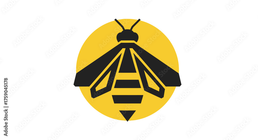 Geometria - Stylized black bee silhouette over a yellow circle on white #1759045178