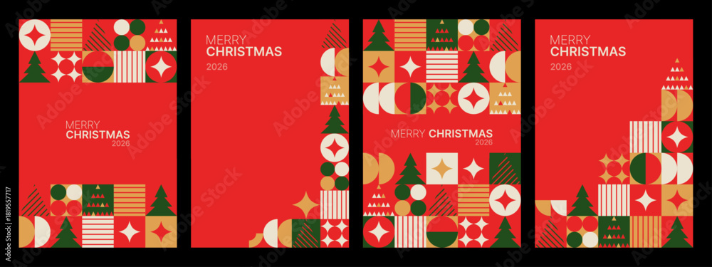 Geometria - Four modern christmas geometric patterns for greeting card design or holiday invitation.... #1819557717