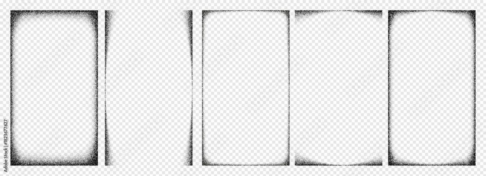 • Set of vertical gradient noise background with fade grainy effect dust. Realistic transparent overlays with gritty stipple textures. Vector retro aesthetic frames